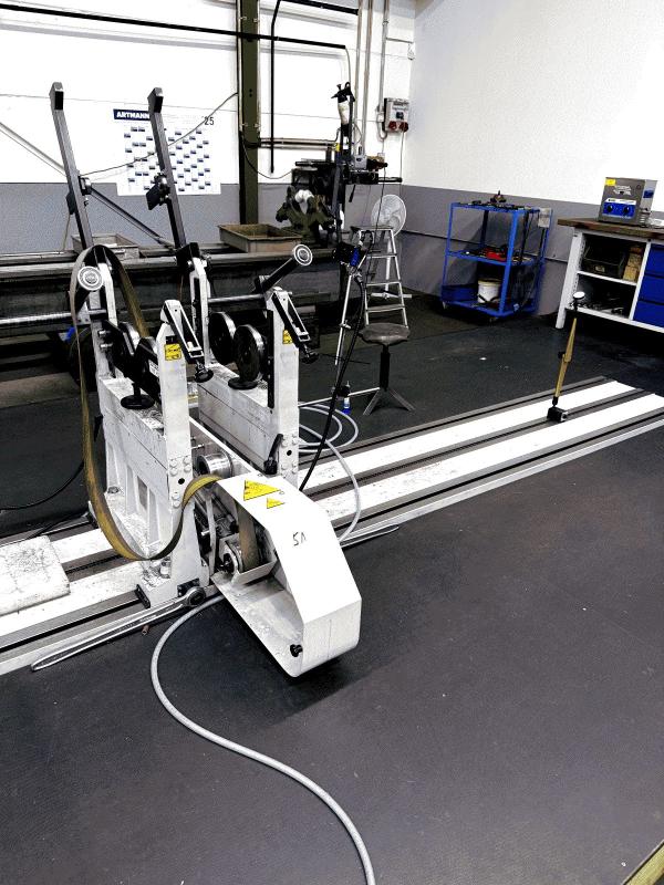 | Description: | (Balancing machine) Diameter 500 mm, machine bed/working area up to 6100 mm, load capacity up to 1100 kg, with barrier enclosure and sliding door, approx. 12 running metres, bearing for pins, protective fence, CNC-based B11 measuring electronics, touchscreen |
