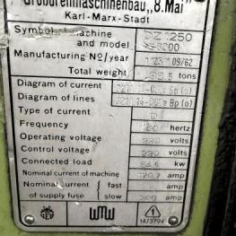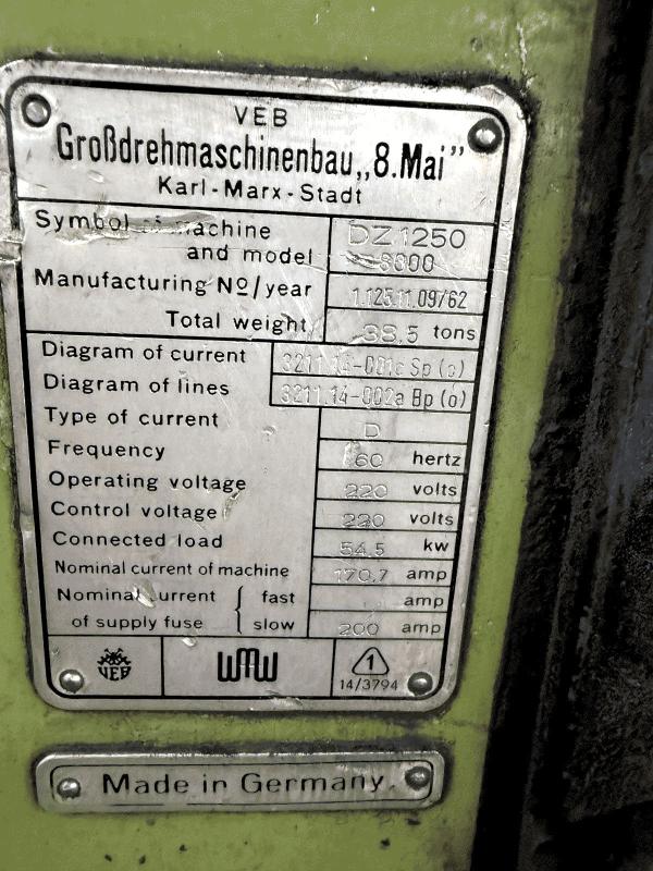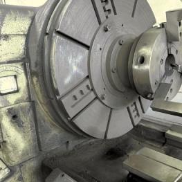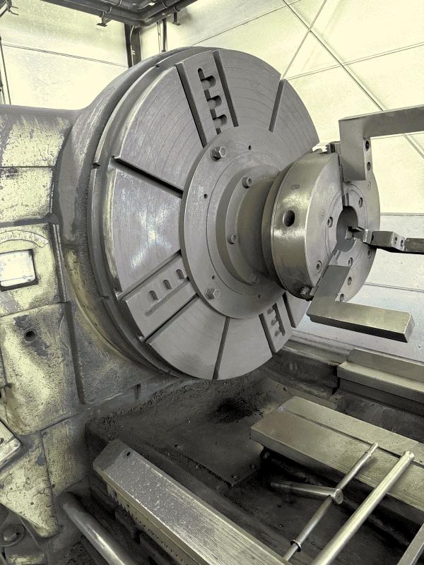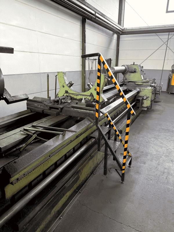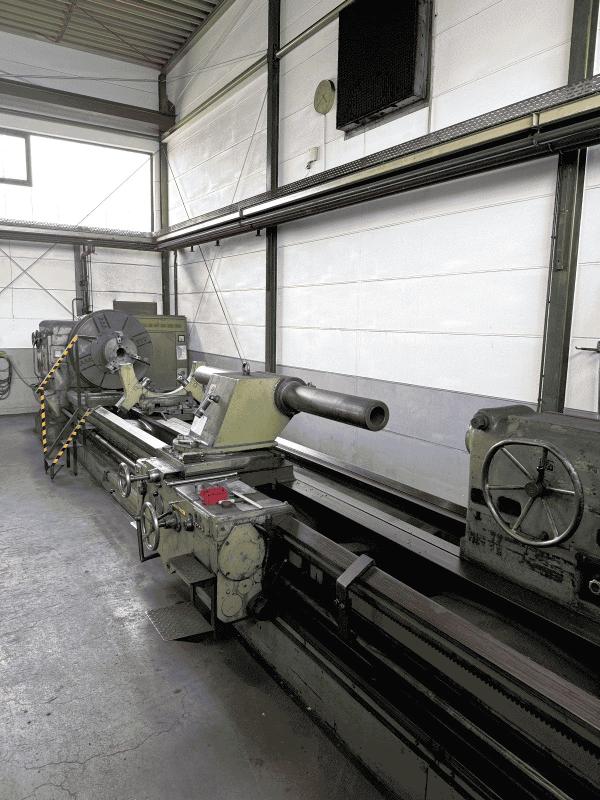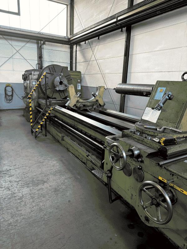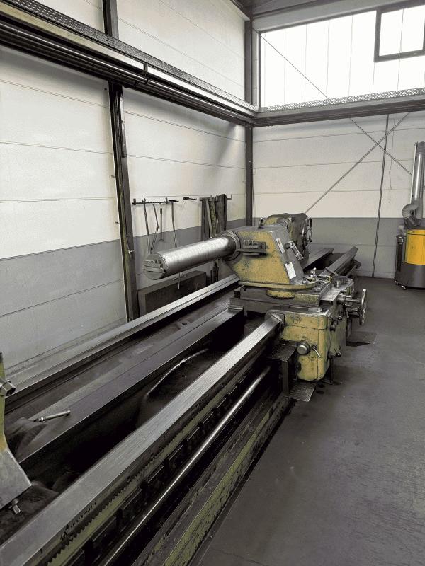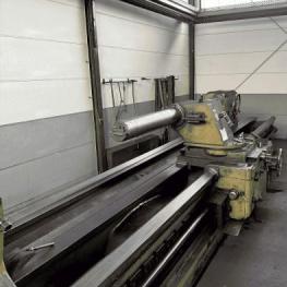 | Description: | Centre height 1010 mm, turning length 8300 mm, turning diameter 1300 mm, weight 38.5 tonnes, drive 54.5 kW, with sliding bed, face plate, steady rests, tailstock with internal turning device, sliding double bed |