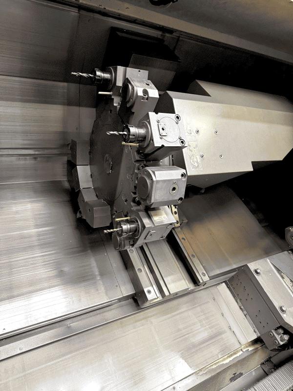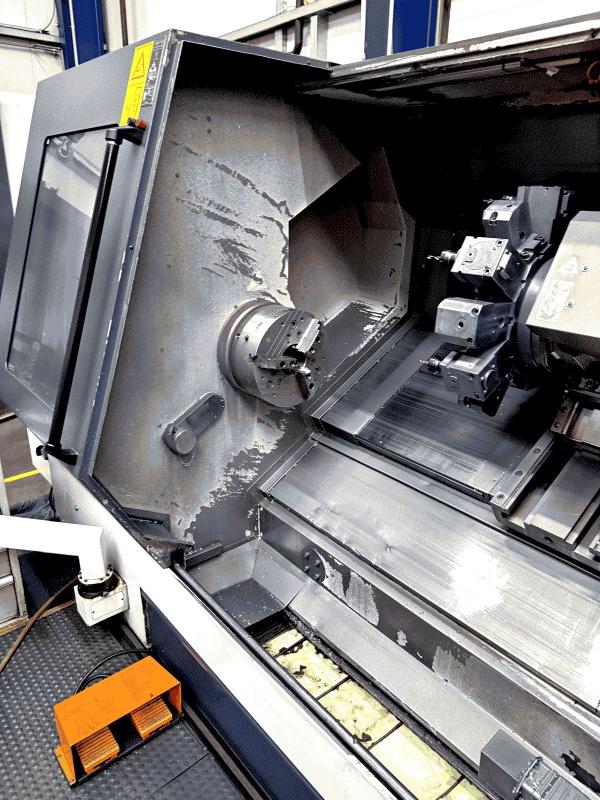 | Description: | X = 360 mm, Z = 1580 mm, centre height 500 mm, turning length 1580 mm, up to 2600 rpm, with 4-station tool turret with driven tools BMT65, drive up to 63 kW, SIEMENS 840DE control, bar passage 110 mm, tailstock, steady rest, chip conveyor, 3-jaw chuck SMW type KNCS-N400-128-A11, hydraulic steady rest, oil mist filter, with touch screen |