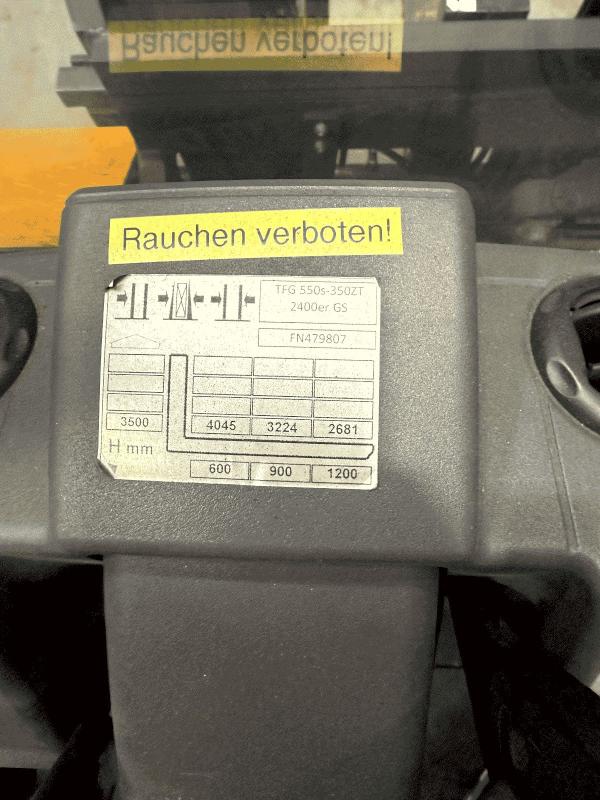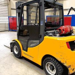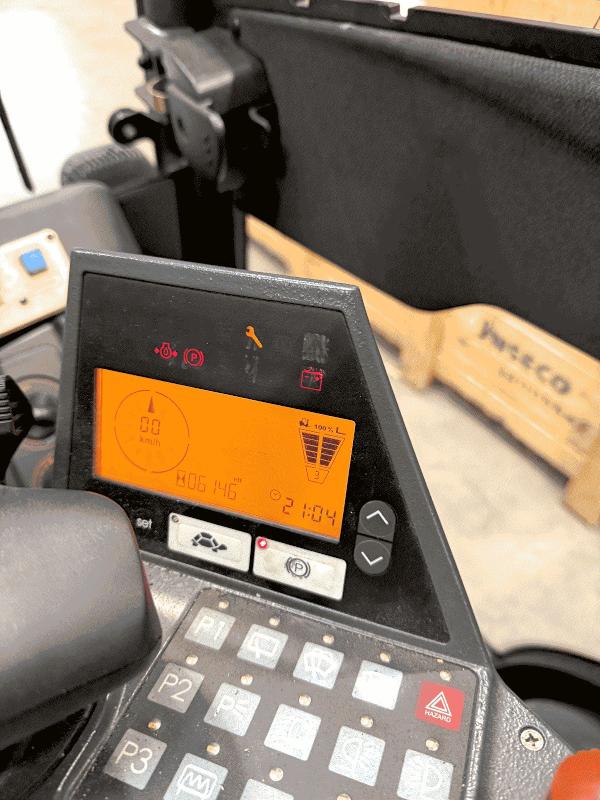 | Description: | Device no. FN479807, with cab, gas drive, 4-wheel drive, hydraulic fork adjustment HYDROSTATIC DRIVE, load capacity 5 tonnes, with RAVAS weighing device, operating hours approx. 6,150 hours. |